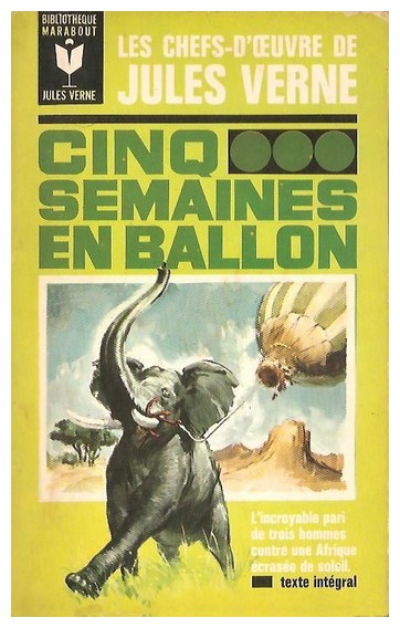 CINQ SEMAINES EN BALLON | JULES VERNE | JV12 | 1967 | BIBLIOTHEQUE Marabout JULES VERNE | Tenter de traverser l'Afrique d'est en ouest par la voie des airs, c'etait, au temps de Jules Verne, une entreprise d'une audace incroyable. Comme on petit s'y attendre, les cinq semaines qu'il faudra au docteur Fergusson et a ses deux compagnons pour y parvenir seront pleines d'imprevu et peripeties.